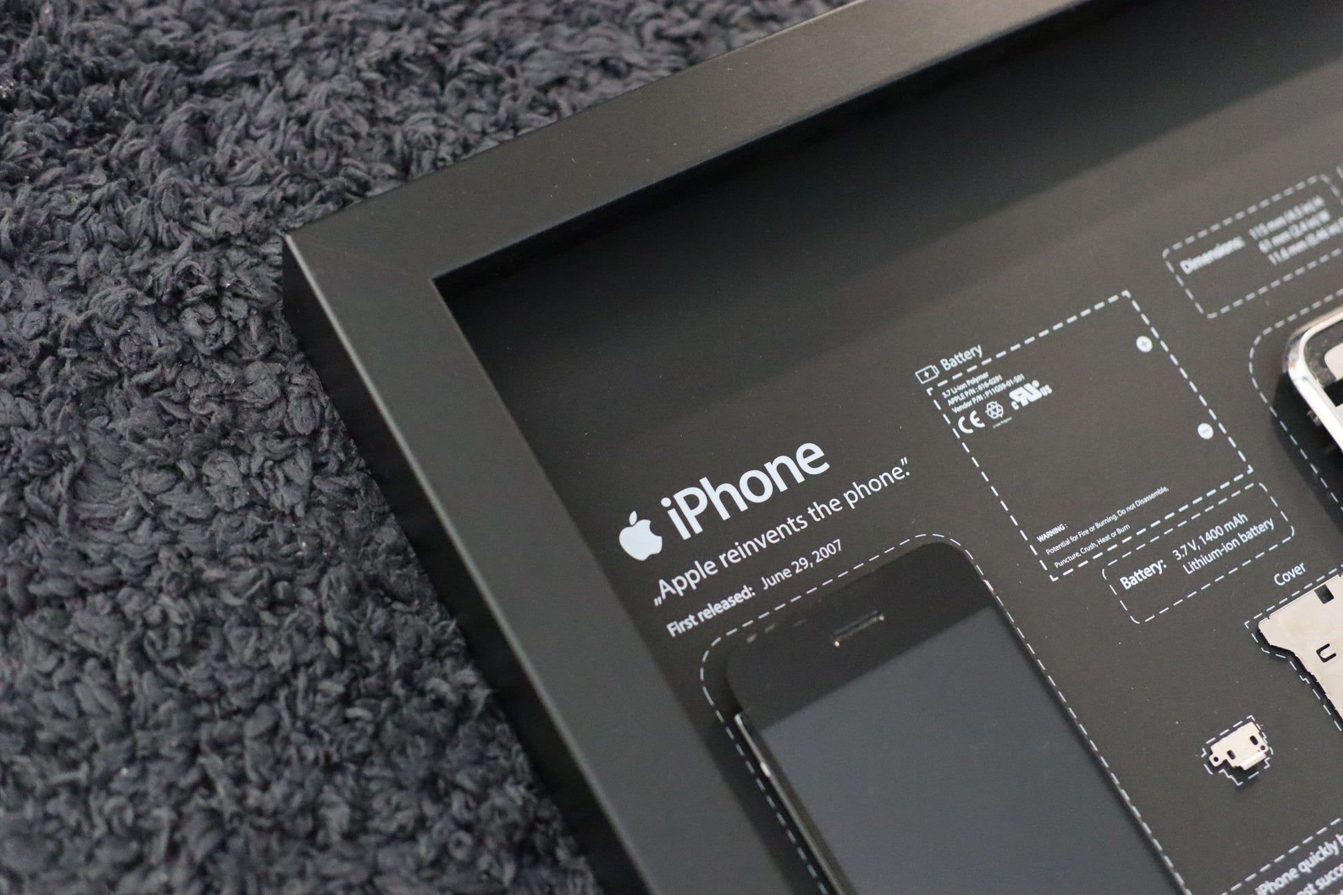 Framed Disassembled phone 1st Gen (2G): Retro Tech Wall Art